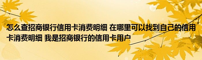 怎么查招商银行信用卡消费明细 在哪里可以找到自己的信用卡消费明细 我是招商银行的信用卡用户