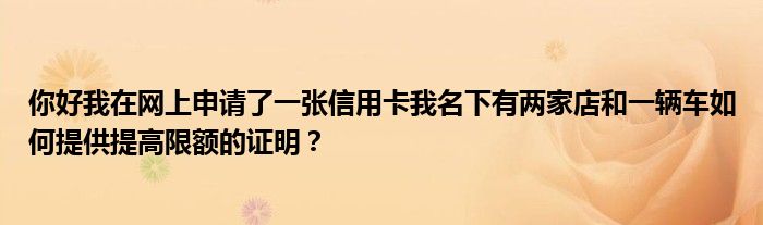 你好我在网上申请了一张信用卡我名下有两家店和一辆车如何提供提高限额的证明?