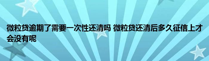 大家好,小元来为大家解答问题。微粒贷逾期了需要一次性还清吗,微粒贷还清后多久征信上才会没有呢这个很多人还不知道,现在让我们一起来了解下吧!