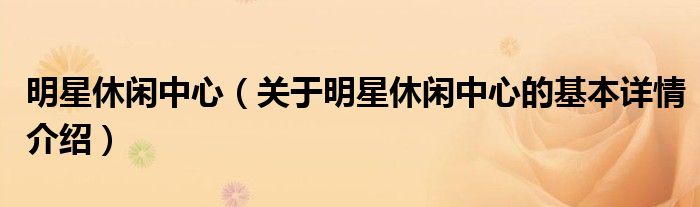 明星休闲中心(关于明星休闲中心的基本详情介绍)