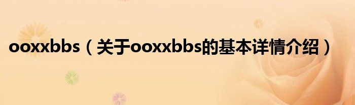 ooxxbbs(关于ooxxbbs的基本详情介绍)