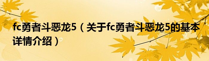 fc勇者斗恶龙5(关于fc勇者斗恶龙5的基本详情介绍)