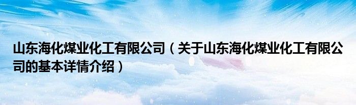 山东海化煤业化工有限公司(关于山东海化煤业化工有限公司的基本详情介绍)
