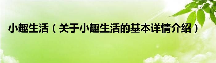本文关于小趣生活的基本详情介绍就讲解完毕,希望对大家有所帮助。