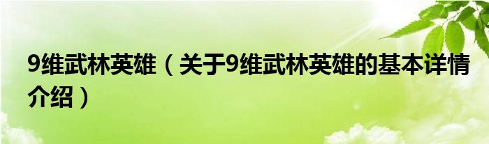 9维武林英雄(关于9维武林英雄的基本详情介绍)