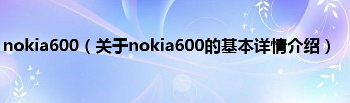 本文关于nokia600的基本详情介绍就讲解完毕,希望对大家有所帮助。