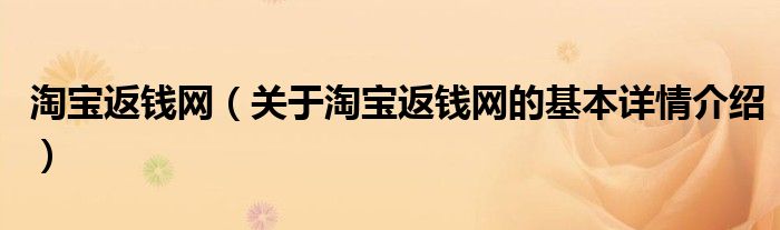 淘宝返钱网(关于淘宝返钱网的基本详情介绍)