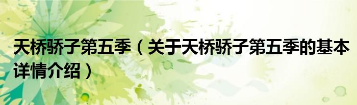 天桥骄子第五季(关于天桥骄子第五季的基本详情介绍)