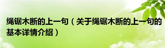 绳锯木断的上一句(关于绳锯木断的上一句的基本详情介绍)