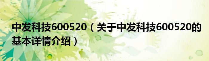 本文关于中发科技600520的基本详情介绍就讲解完毕,希望对大家有所帮助。