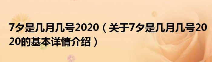 7夕是几月几号2020(关于7夕是几月几号2020的基本详情介绍)