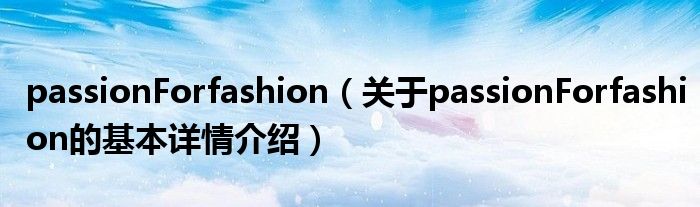 passionForfashion(关于passionForfashion的基本详情介绍)