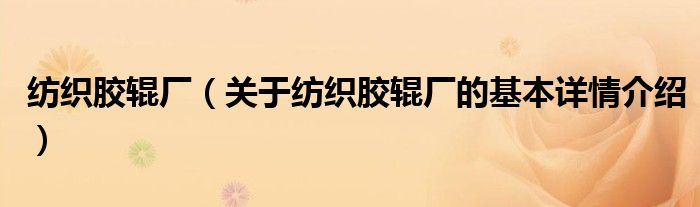 本文关于纺织胶辊厂的基本详情介绍就讲解完毕,希望对大家有所帮助。