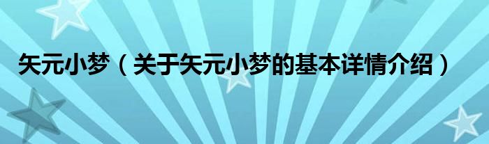 本文关于矢元小梦的基本详情介绍就讲解完毕,希望对大家有所帮助。