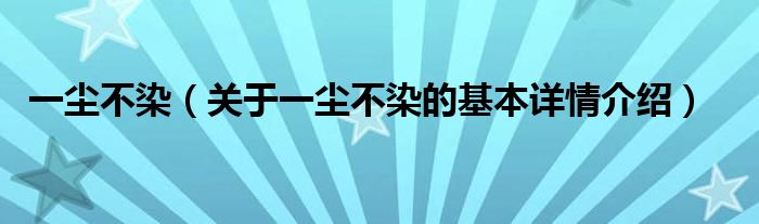 本文关于一尘不染的基本详情介绍就讲解完毕,希望对大家有所帮助。