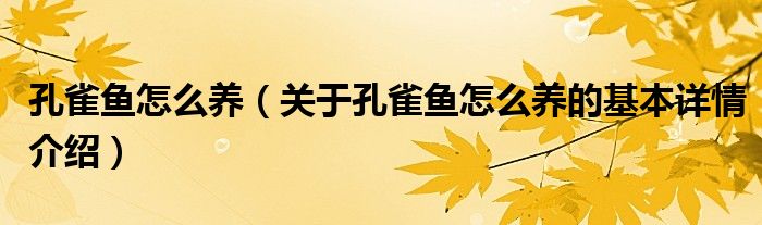 孔雀鱼怎么养(关于孔雀鱼怎么养的基本详情介绍)