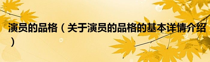 本文关于演员的品格的基本详情介绍就讲解完毕,希望对大家有所帮助。