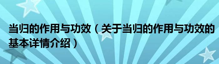 当归的作用与功效(关于当归的作用与功效的基本详情介绍)
