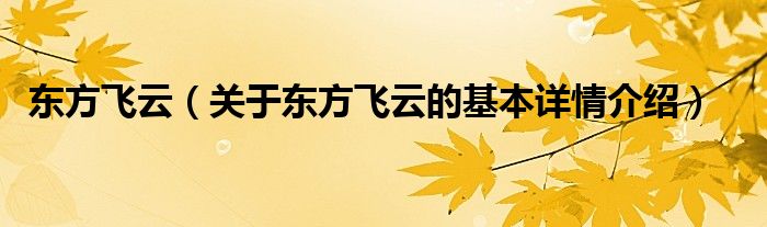 本文关于东方飞云的基本详情介绍就讲解完毕,希望对大家有所帮助。
