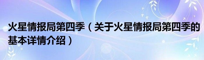 火星情报局第四季(关于火星情报局第四季的基本详情介绍)