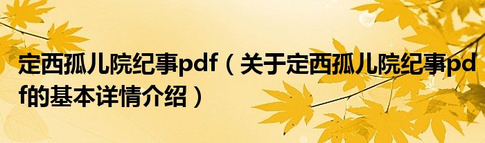 本文关于定西孤儿院纪事pdf的基本详情介绍就讲解完毕,希望对大家有所帮助。