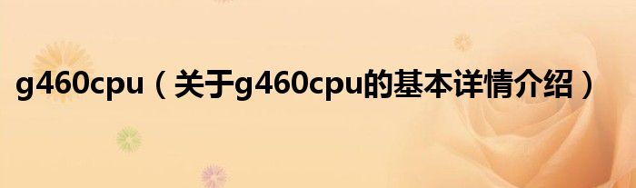 本文关于g460cpu的基本详情介绍就讲解完毕,希望对大家有所帮助。