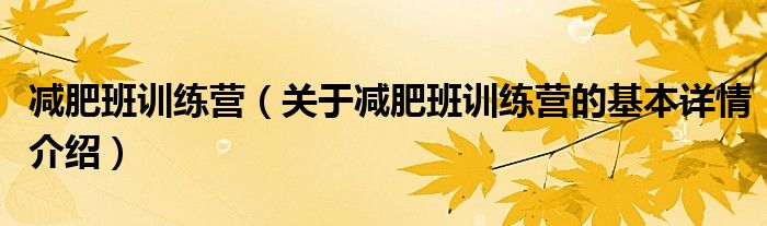 减肥班训练营(关于减肥班训练营的基本详情介绍)
