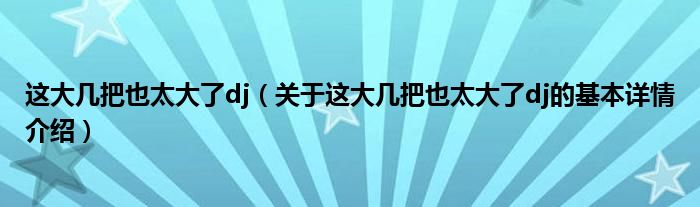 这大几把也太大了dj(关于这大几把也太大了dj的基本详情介绍)