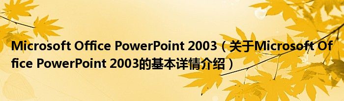 Microsoft Office PowerPoint 2003(关于Microsoft Office PowerPoint 2003的基本详情介绍)