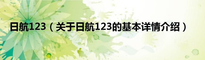 日航123(关于日航123的基本详情介绍)