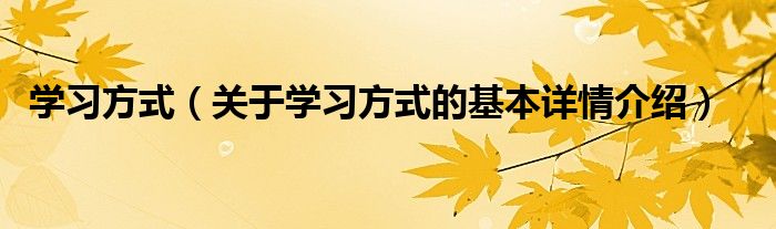 本文关于学习方式的基本详情介绍就讲解完毕,希望对大家有所帮助。