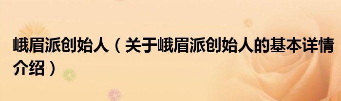 峨眉派创始人(关于峨眉派创始人的基本详情介绍)