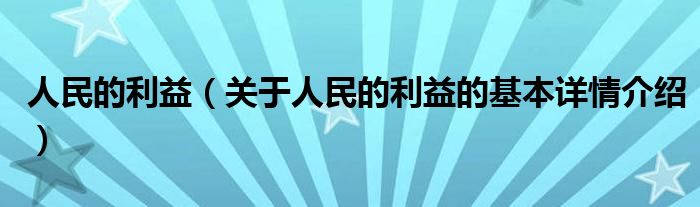 人民的利益(关于人民的利益的基本详情介绍)