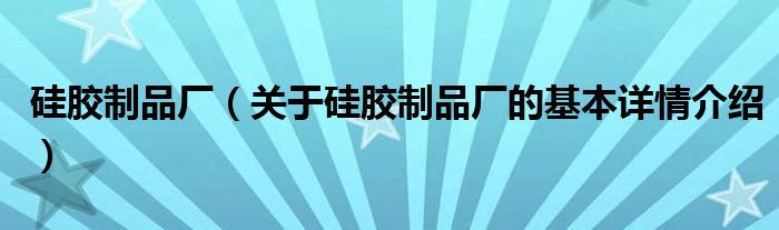 硅胶制品厂(关于硅胶制品厂的基本详情介绍)