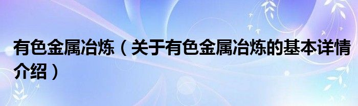 有色金属冶炼(关于有色金属冶炼的基本详情介绍)