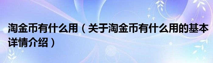 淘金币有什么用(关于淘金币有什么用的基本详情介绍)