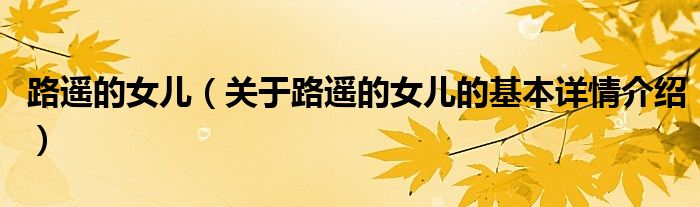路遥的女儿(关于路遥的女儿的基本详情介绍)