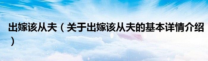 出嫁该从夫(关于出嫁该从夫的基本详情介绍)