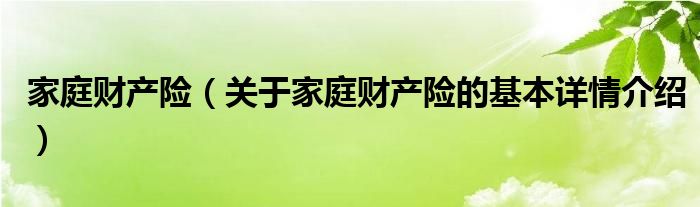 家庭财产险(关于家庭财产险的基本详情介绍)