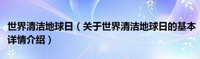 世界清洁地球日(关于世界清洁地球日的基本详情介绍)