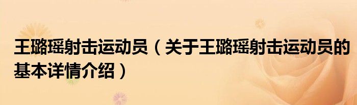 本文关于王璐瑶射击运动员的基本详情介绍就讲解完毕,希望对大家有所帮助。