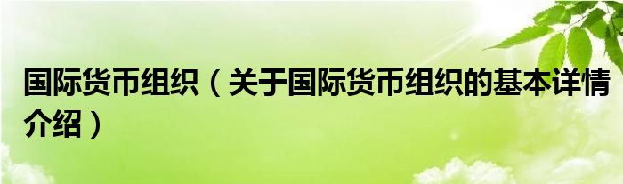 本文关于国际货币组织的基本详情介绍就讲解完毕,希望对大家有所帮助。