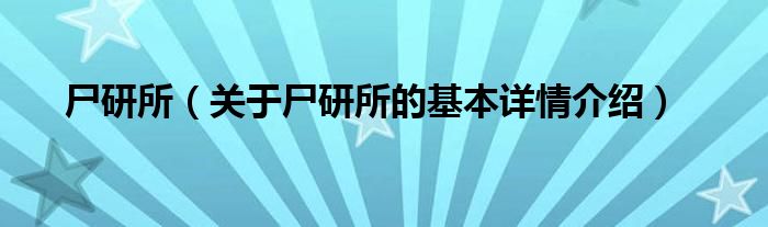 本文关于尸研所的基本详情介绍就讲解完毕,希望对大家有所帮助。