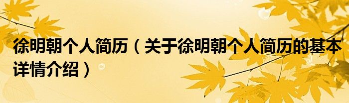 徐明朝个人简历(关于徐明朝个人简历的基本详情介绍)