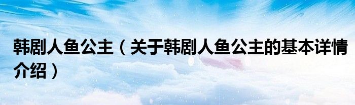 本文关于韩剧人鱼公主的基本详情介绍就讲解完毕,希望对大家有所帮助。