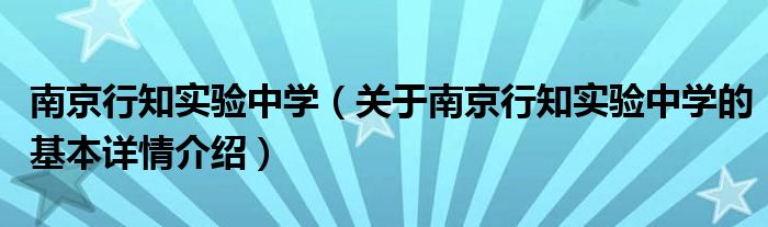 南京行知实验中学(关于南京行知实验中学的基本详情介绍)