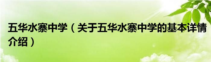 五华水寨中学(关于五华水寨中学的基本详情介绍)