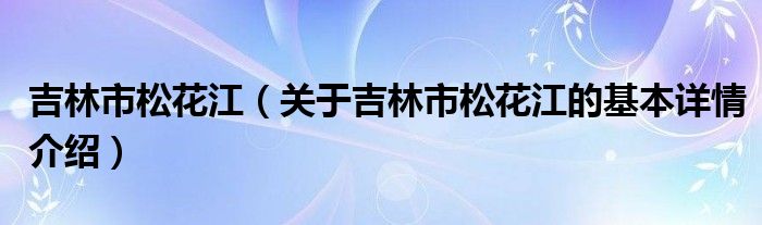 吉林市松花江(关于吉林市松花江的基本详情介绍)