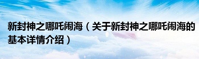 新封神之哪吒闹海(关于新封神之哪吒闹海的基本详情介绍)