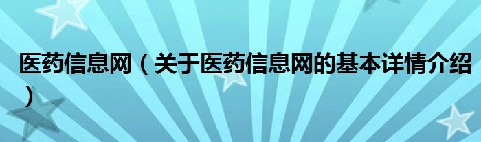 本文关于医药信息网的基本详情介绍就讲解完毕,希望对大家有所帮助。